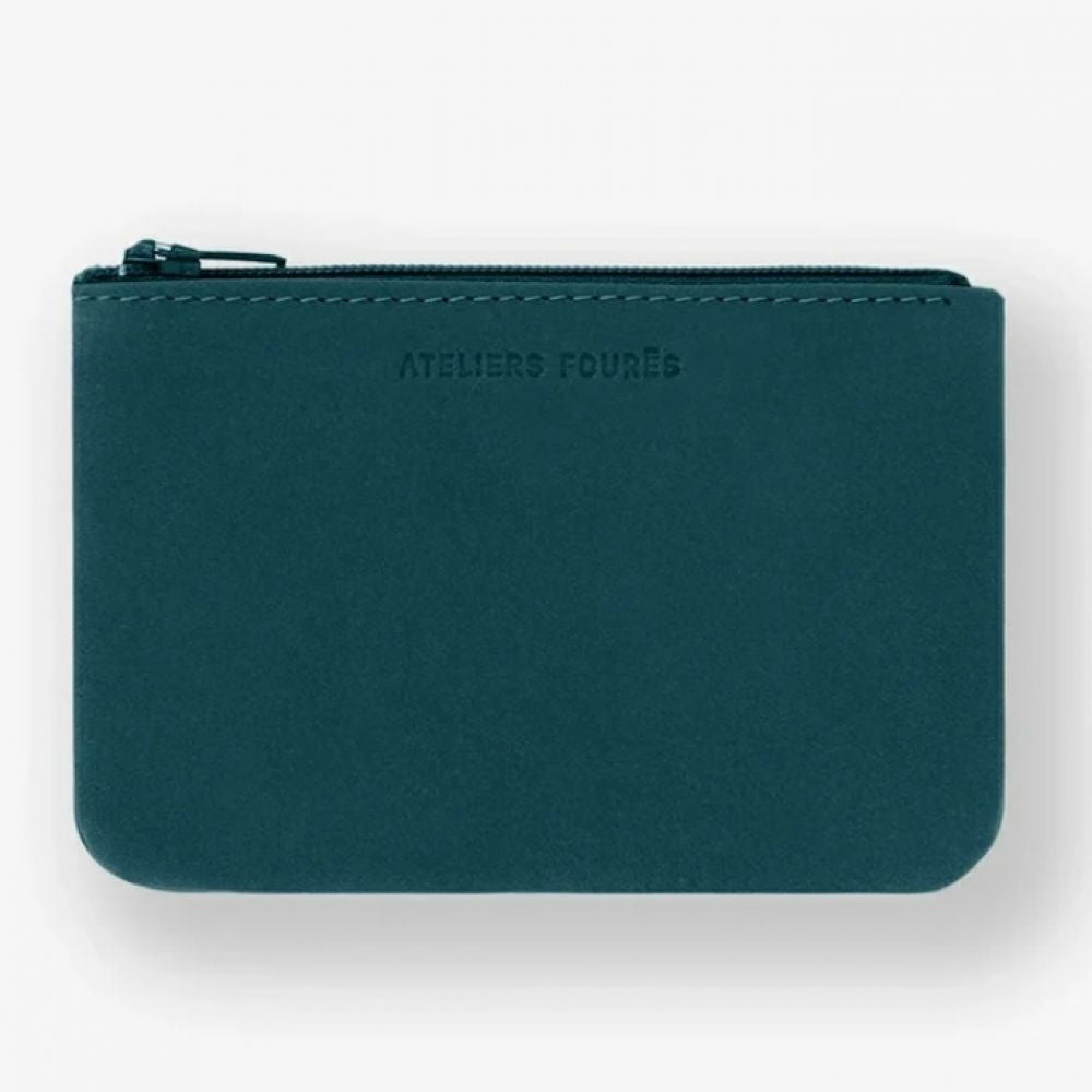 Porte-monnaie et carte 2 zips en cuir pleine fleur - Paon