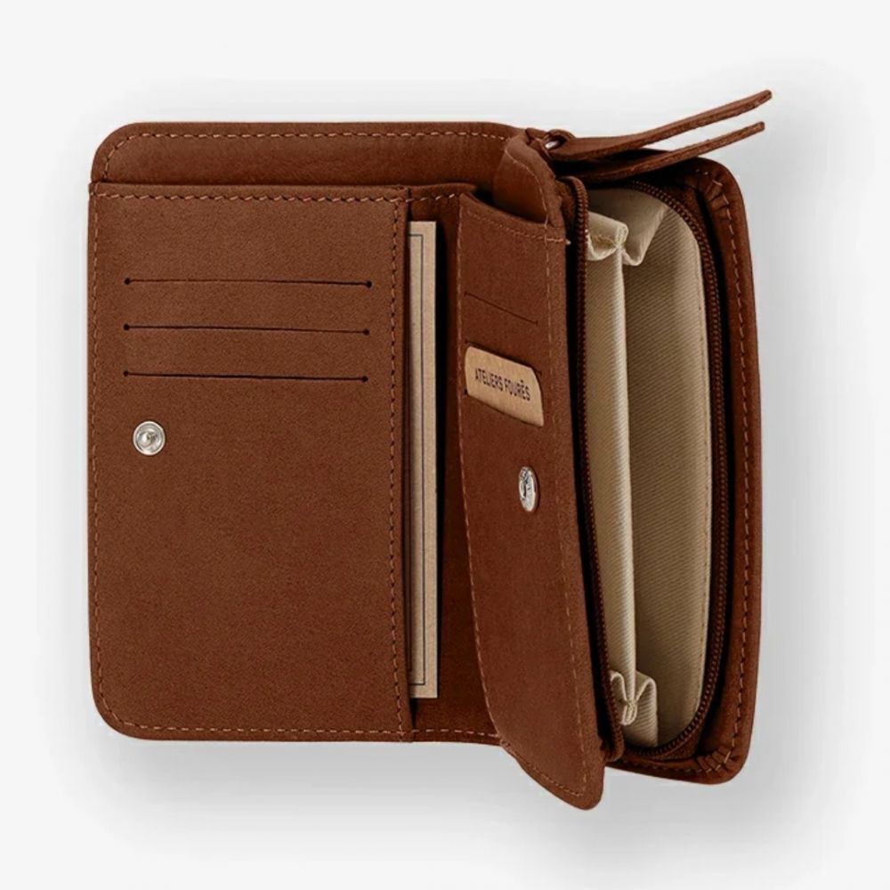 Une organisation optimisée : 6 CB, emplacement pour papier d'identité, fermeture à pression qui sécurise la partie cartes et billets, 1 poche à billets, 1 poche monnaie zippée