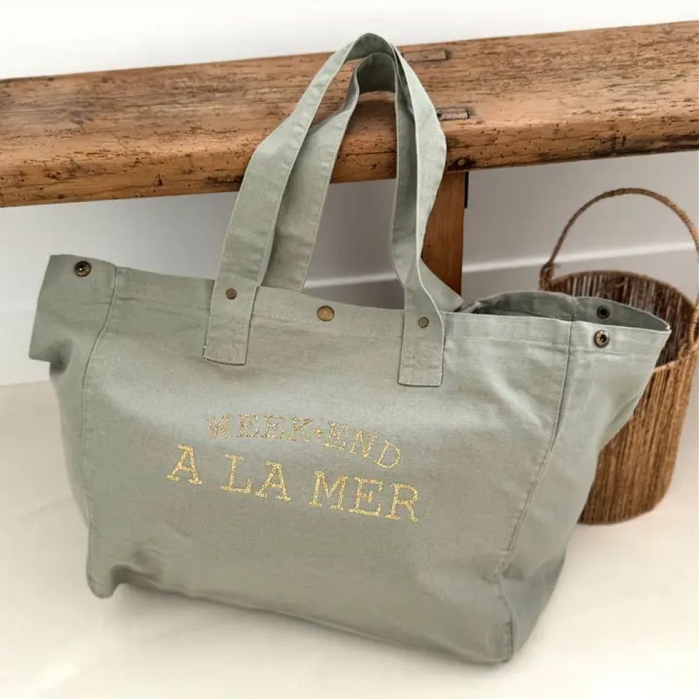Grand cabas vert sauge - Week-end à la mer