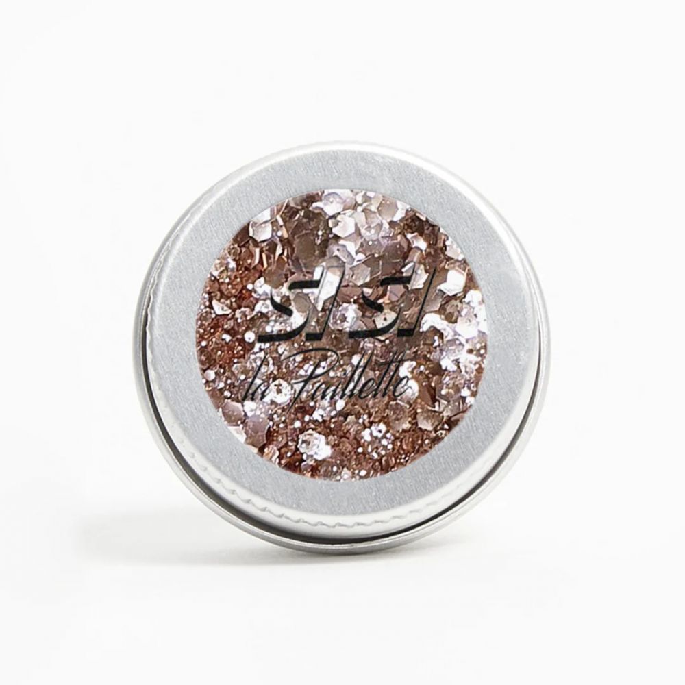 Un mélange de paillettes à base de plantes Tchin Tchin aux couleurs or rose, et de toutes les tailles pour toujours plus de brillance !