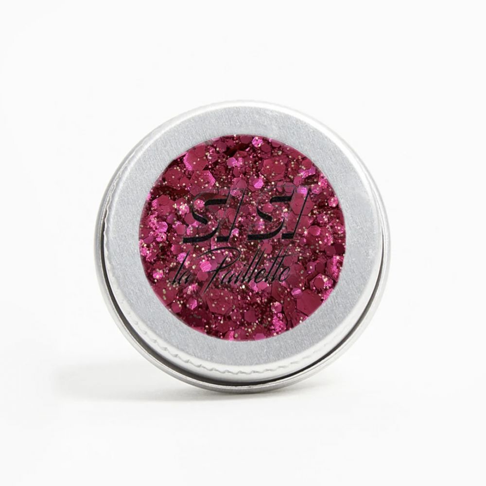 Un mélange de paillettes à base de plantes Tagadamour aux couleurs rouge framboise et dorées, et de toutes les tailles pour toujours plus de brillance !